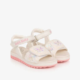 White shorts for girls by iDO, made in soft cotton twill with a slight stretch. A stylish choice for warmer days, they have five pockets and diamantés on the front adding a touch of sparkle. The fasten with a button and zip and have a useful adjustable waist for a great fit. They come with a detachable glittery silver belt, which has a heart-shaped buckle for a lovely finishing touch.