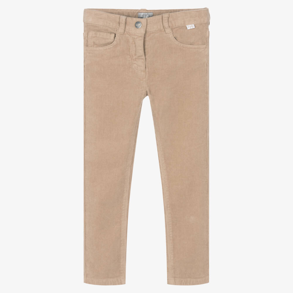 Beige corduroy trousers for girls by Il Gufo, made from super soft and stretchy cotton. These timeless trousers have a classic five-pocket design with a signature logo tab detailed on the front. Fastening with a popper and zip, they have an adjustable waist for a neat fit.
