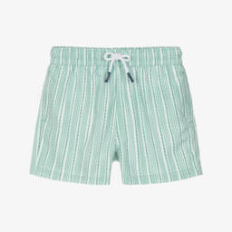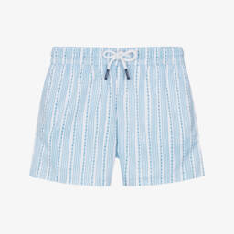 Бело-голубые шорты-плавки для мальчиков от J&Josh с веселым полосатым узором. Быстросохнущие и легкие, они имеют удобную сетчатую подкладку и эластичный пояс с завязками для надежной посадки. Есть удобные боковые карманы и брендированный карман сзади для ненавязчивого брендового акцента.