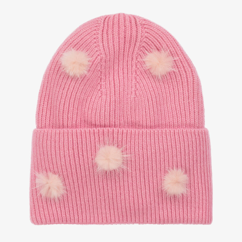 Розовая шапка из шерсти и кашемира с помпонами для девочек