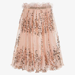 Pretty blue tulle skirt for girls by Junona, with a panels of black polka dots. There is a black beaded design on the front and a gold crown logo plate on the black elasticated waistband. The cotton voile lining provides all-day comfort and modesty.