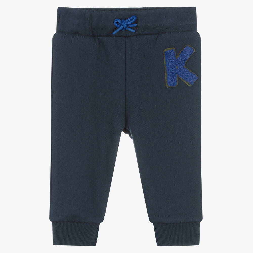 Comfortable for little boys, these navy blue joggers from KENZO KIDS are made in cotton-blend jersey with a cosy fleece feel inside. They have a cool varsity style bouclé 'K' appliqué on the front and an embroidered Kenzo Paris logo on the back to elevate this casual style. They have a drawstring waist for an adjustable fit and useful concealed side pockets.