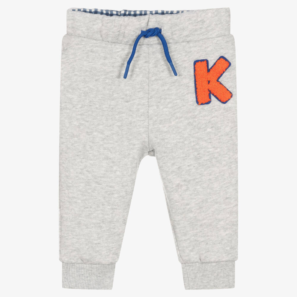 Comfortable for little boys, these grey marl joggers from KENZO KIDS are made in cotton-blend jersey with a cosy fleece feel inside. They have a cool varsity style bouclé 'K' appliqué on the front and an embroidered Kenzo Paris logo on the back to elevate this casual style. They have a drawstring waist for an adjustable fit and useful concealed side pockets.