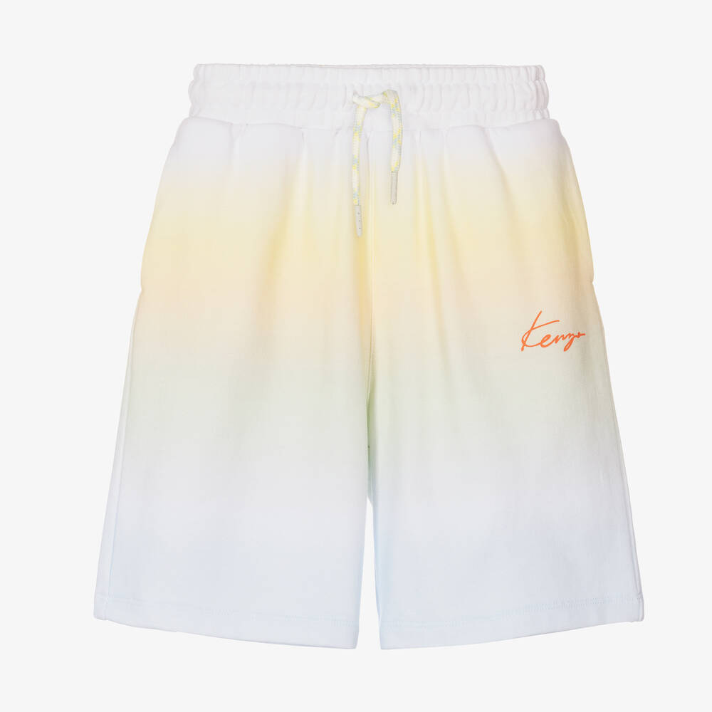 Cool yellow and blue gradient shorts for boys from KENZO KIDS, made in mid-weight cotton jersey. With an elasticated waist and loose cut, they are comfortable and ideal for relaxing in. The drawstring waist can be adjusted for a better fit and a bright orange Kenzo script logo is printed on the leg for a signature finish.