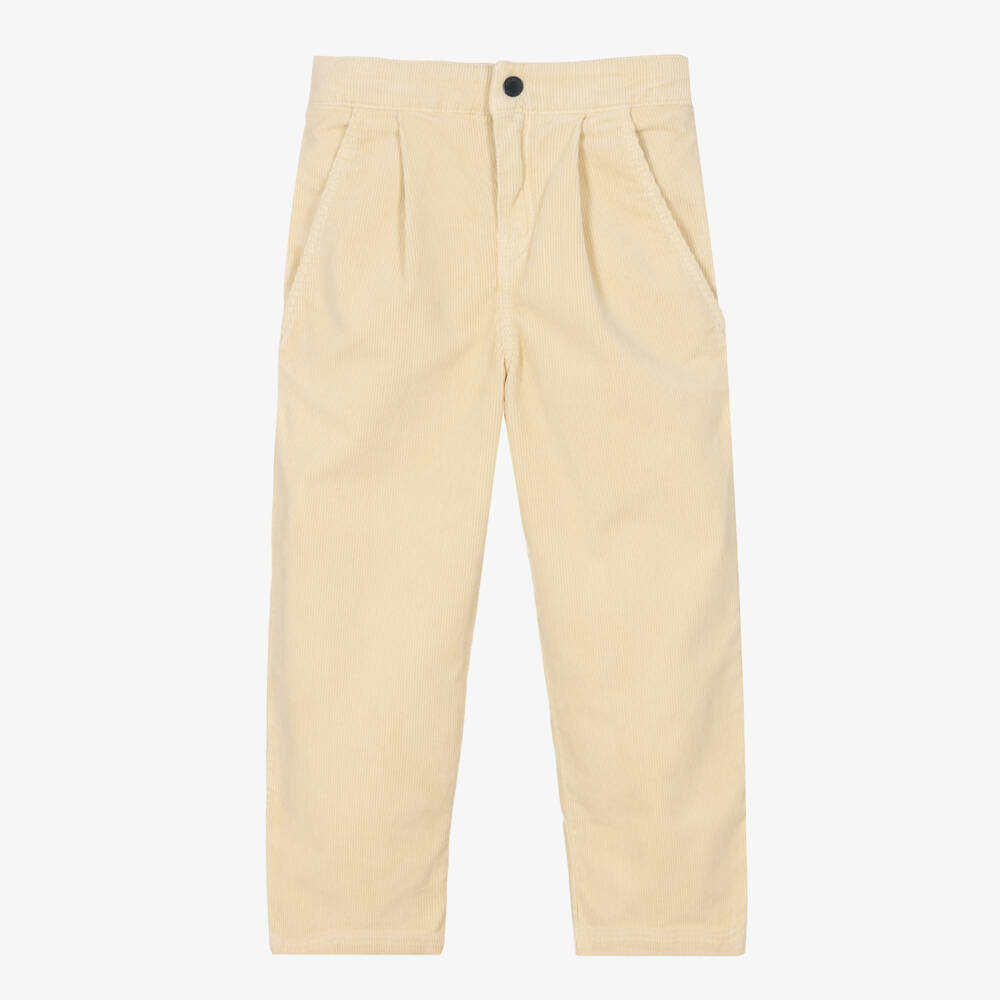 Lovely ivory trousers for girls by KENZO KIDS, forming part of the Nigo KOTORA capsule. Made in soft cotton corduroy, they have a cute yellow tiger logo embroidered on the back pocket, with the brand's logo underneath. In a classic straight leg fit, they fasten with an easy popper and zip and have a useful adjustable waist.