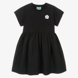 Pretty coral pink dress for little girls by KENZO KIDS, knitted in a soft, mid-weight blend of cotton, viscose and wool. Warm and cosy, it has ribbed trims and branded button fastenings on one shoulder. The front features a red, black and yellow intarsia Boke Flower design to reflect the House's new emblem. For added designer appeal there is a black Kenzo Paris logo on the back.