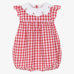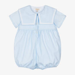 A blue and white gingham check shortie for little boys, handmade in soft cotton by Kidiwi. For a sweet traditional look, it has a white sailor-style collar and pearlescent button fastenings on the back. There are poppers between the legs and a soft cotton lining for lasting comfort.