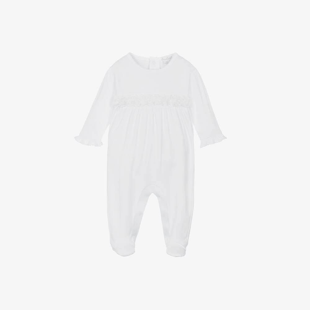 Белый комбинезон из хлопка пима с мини розами для девочек