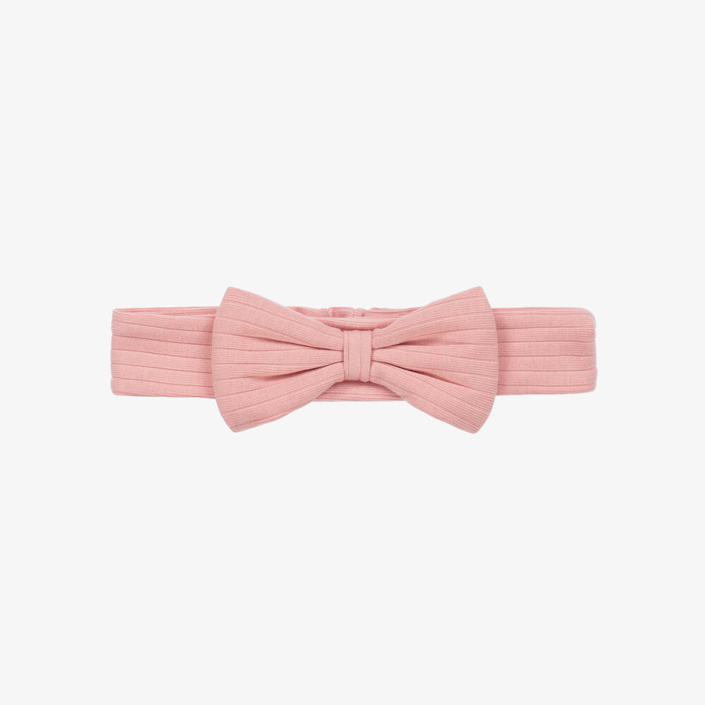 A super sweet pink headband for little girls by Kissy Love, made from soft ribbed Pima cotton jersey. A lovely accessory, it is decorated with a delightful bow on the front and has an elasticated back panel for added comfort.
