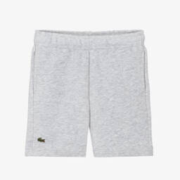 Casual grey shorts for boys from Lacoste, made in soft organic cotton blend jersey with useful side seam pockets. The elasticated waist has an internal drawstring for a comfortable fit and the brand's signature crocodile logo patch is sewn on the front, adding instant brand recognition.