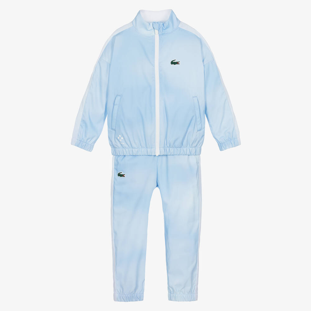 Мини-ми голубой спортивный костюм для мальчиков от Lacoste из фирменной технической ткани с алмазным плетением. Он модный, дышащий и быстро сохнет. Часть теннисной капсулы, разработанной теннисистом Даниилом Медведевым. Обе части украшены легендарным зеленым логотипом крокодила. Верх на молнии имеет большого синего крокодила на спине и передние карманы на молнии. Брюки имеют передние карманы, молнии на манжетах и внутренний шнурок для отличной посадки.