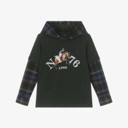 Ivory sweatshirt for girls by Lapin House, made in comfortable cotton jersey with dropped shoulder seams. It has a charming pink and blue woodland print with pretty sequin and bead decoration on the front. It has a knitted ruffle hem for a lovely finishing touch.