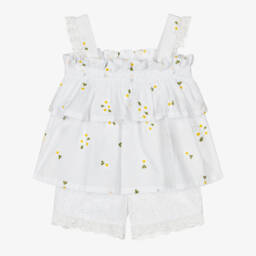 Белые укороченные брюки бродери англез для девочек