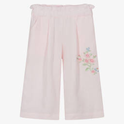 Эти красивые белые хлопковые брюки для девочек от Lapin House украшены изысканной вышивкой в стиле бродери англез. Укороченная длина и стильный широкий крой делают их особенно модными. Спереди есть удобные карманы. Брюки частично на подкладке и имеют мягкий эластичный пояс для комфортной посадки.