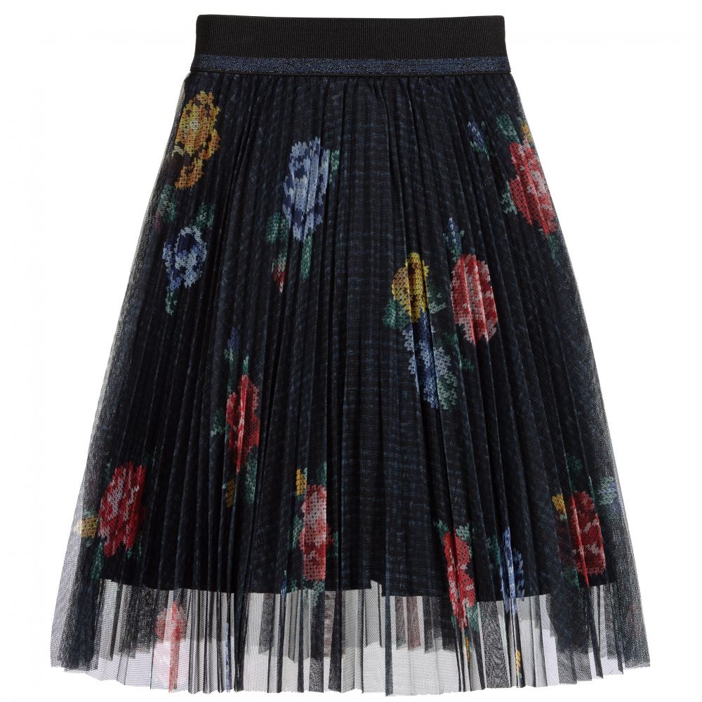 Girls navy blue skirt from Lapin House, made in pleated floral tulle. It has a soft, lightweight cotton lining and an elasticated waistband.