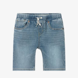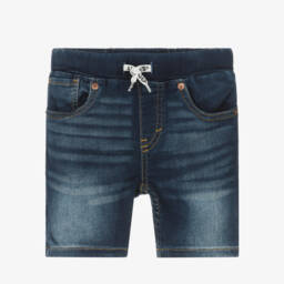 Синие шорты для мальчиков от Levi's из мягкого стрейч-денима с эффектом потертости. Изготовлены из ткани Repreve, имеют узкий крой по бедрам и бедрам и сидят чуть выше колена. Классический стиль с пятью карманами, они оснащены эластичным поясом с фирменными завязками для регулировки посадки. Сзади шорты украшены патчем с логотипом 2-Horse и фирменной красной биркой.