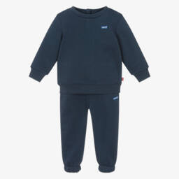 Синий спортивный костюм для малышей от Levi's из мягкого хлопкового трикотажа с теплой флисовой подкладкой. Уютный и комфортный, оба элемента украшены легендарным логотипом Batwing. Топ имеет застежки-кнопки на спине и фирменную красную бирку на боку, а брюки оснащены боковыми карманами и эластичным поясом с декоративным шнурком.