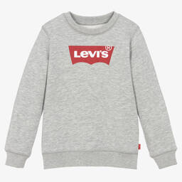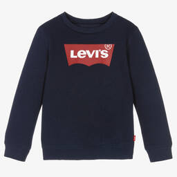 Navy blue sweatshirt for boys and girls by Levi's, made in soft and comfortable cotton jersey with a fleecy inside. Ideal for casual days, it has the brand's iconic batwing logo print on the front in red and for a signature designer finish, a logo tab is on one side seam.