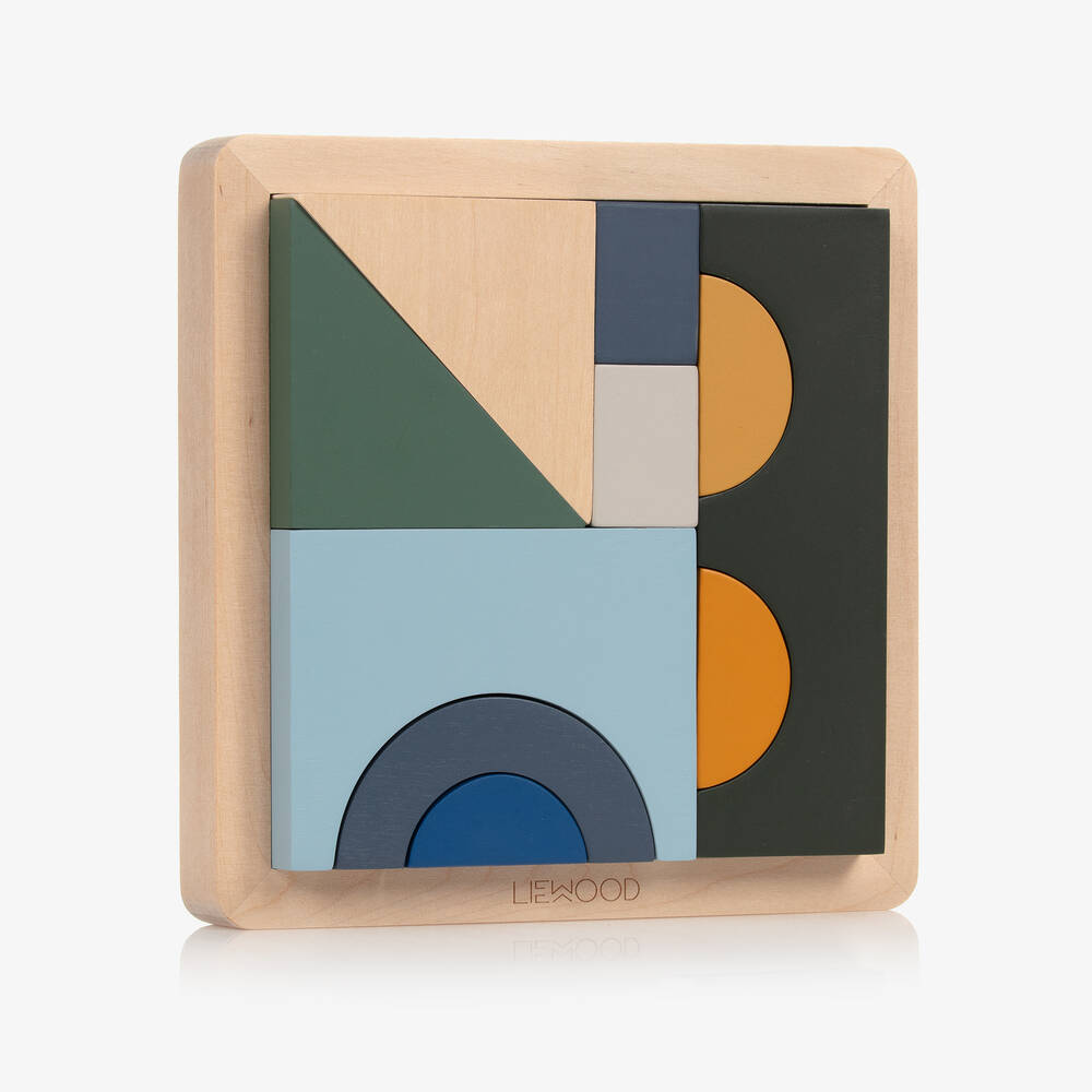 Keep your little one engaged with this fun wooden puzzle set by Danish brand, Liewood. The set comprises a wooden frame with ten blocks of different colours, shapes and sizes. Great for encouraging cognitive development, the blocks need to be arranged so they all fit neatly inside the frame.