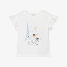 Топ белый хлопковый с девочкой и велосипедом