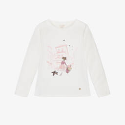 Такой милый для маленьких девочек, этот бело-кремовый топ с длинными рукавами от Lili Gaufrette выполнен из мягкого хлопкового трикотажа. Украшен очаровательным рисунком девочки на велосипеде с блестящим золотым шариком, объемной красной юбкой из тюля и бантом. Золотистые кнопки с тиснением в виде банта добавляют милый завершающий штрих и обеспечивают легкость одевания.