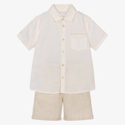 Baby Boys Beige Cotton Shorts Set