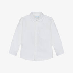 Классическая рубашка для мальчиков от Mayoral в голубую и белую полоску, из мягкого хлопка. Эта вечная модель имеет аккуратный заостренный воротник и нагрудный карман. Застегивается спереди и на манжетах фирменными пуговицами.