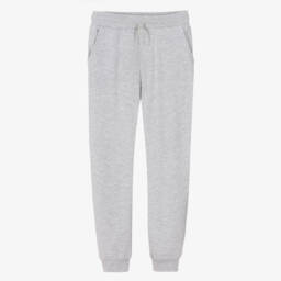 Grey marl joggers for older boys by Mayoral Nukutavake, made in soft cotton-blend jersey. These casual joggers have useful front pockets and a drawstring waist for a great fit. There is a patch pocket around the back with a small logo patch for a subtle branded finish.