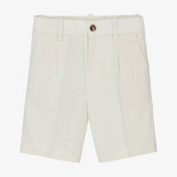Кремово-бежевые шорты в клетку для мальчиков от Mayoral из легкой смеси хлопка и льна. Эти стильные повседневные шорты имеют косые передние карманы и дополнительный карман с пуговицей сзади. Пояс регулируется для идеальной посадки, застежка на фирменную пуговицу спереди.