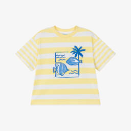 Boys Ivory Cotton Piqué T-Shirt with Blue Trim