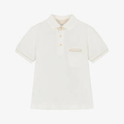 Синяя рубашка поло с длинными рукавами для малышей от Mayoral из мягкого хлопкового трикотажа. Эта повседневная модель имеет белые полосатые манжеты и застегивается на пуговицы спереди. Аппликация милого мишки и принт 'B' добавляют очаровательный акцент.