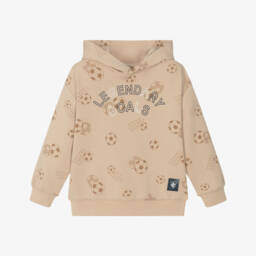 Cool and casual, this navy blue hooded sweatshirt for boys is by Mayoral, with mountain and outdoor-themed prints. It is made in soft cotton jersey with a fleecy underside and ribbed trims for added cosiness. There are two hand pockets on the side seams.