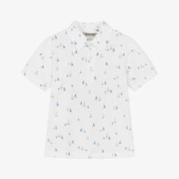 Рубашка поло в бело-синюю полоску из хлопка для мальчиков