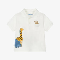 Повседневная белая рубашка в стиле Хенли для мальчиков от Mayoral из мягкого и комфортного хлопкового пике. Имеет синие и белые отделки, застежку на пуговицах и удобный нагрудный карман.