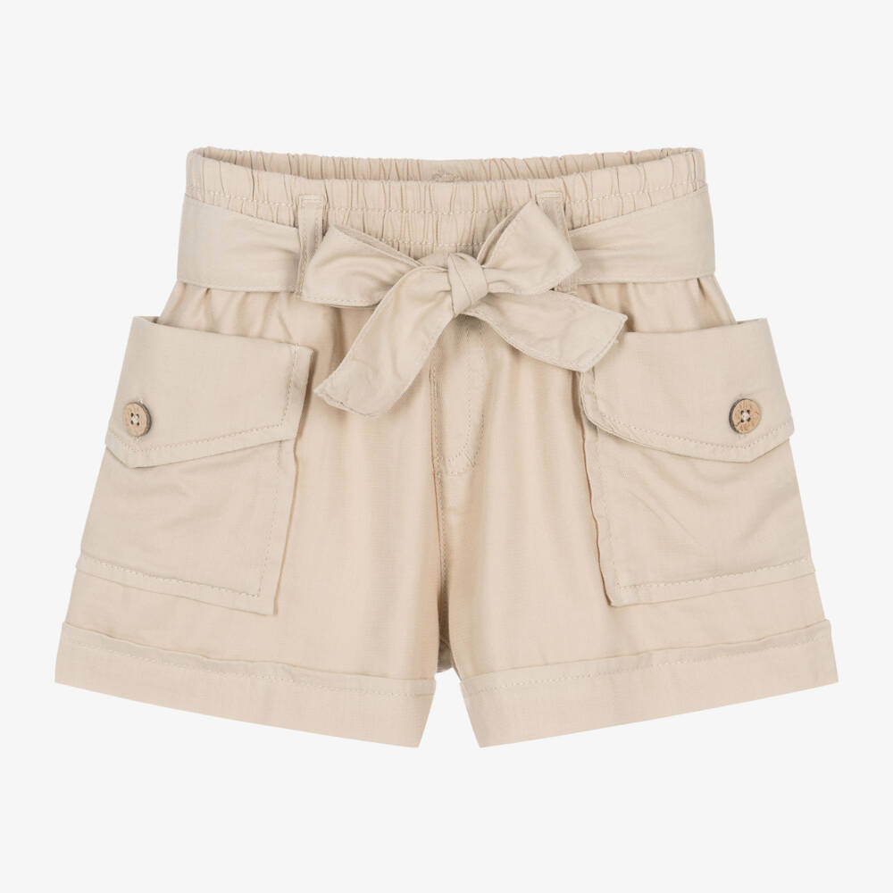 Girls Beige Cotton & Lyocell Cargo Shorts