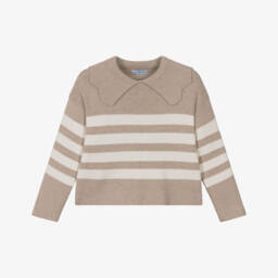Девочкам понравится этот бежевый свитер от Mayoral с яркими полосками и очаровательным волнистым воротником. Стильный и удобный, он связан из мягкой смеси вискозы в свободном крое с приспущенными плечами.