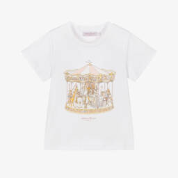 Светло-бежевые джинсы с широкими штанинами для девочек от Mayoral из мягкого хлопкового твила с небольшим добавлением эластана. Они имеют контрастную строчку цвета хаки и декоративную планку с пуговицами поверх функциональной молнии и застежки на пуговицу. На одном из накладных карманов есть тисненый узор для милого акцента.