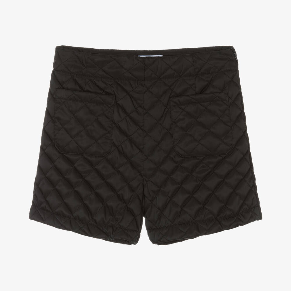 Black quilted shorts for girls by Mayoral, made from a silky smooth fabric. Stylish yet practical, these shorts have a side zip fastening and patch pockets on the front. There is an adjustable waistband for a comfortable fit.