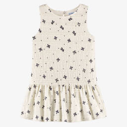 Girls gold dress by Mayoral, made in pleated lurex tulle with an added touch of sparkle. Beautifully soft and lightweight, this pretty dress has a gorgeous asymmetric shape with a statement bow on one shoulder. Ideal for a special occasion, it has a soft lining for added comfort and modesty.
