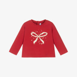 Кремовый топ с длинными рукавами для маленьких девочек от Mayoral из мягкого хлопкового трикотажа. Спереди топа изображен очаровательный принт с бантом и блестящими золотыми деталями для дополнительного сияния. Застежки-кнопки на спине облегчают процесс одевания.
