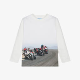 Girls Ivory Cotton Sequin Graphic Top