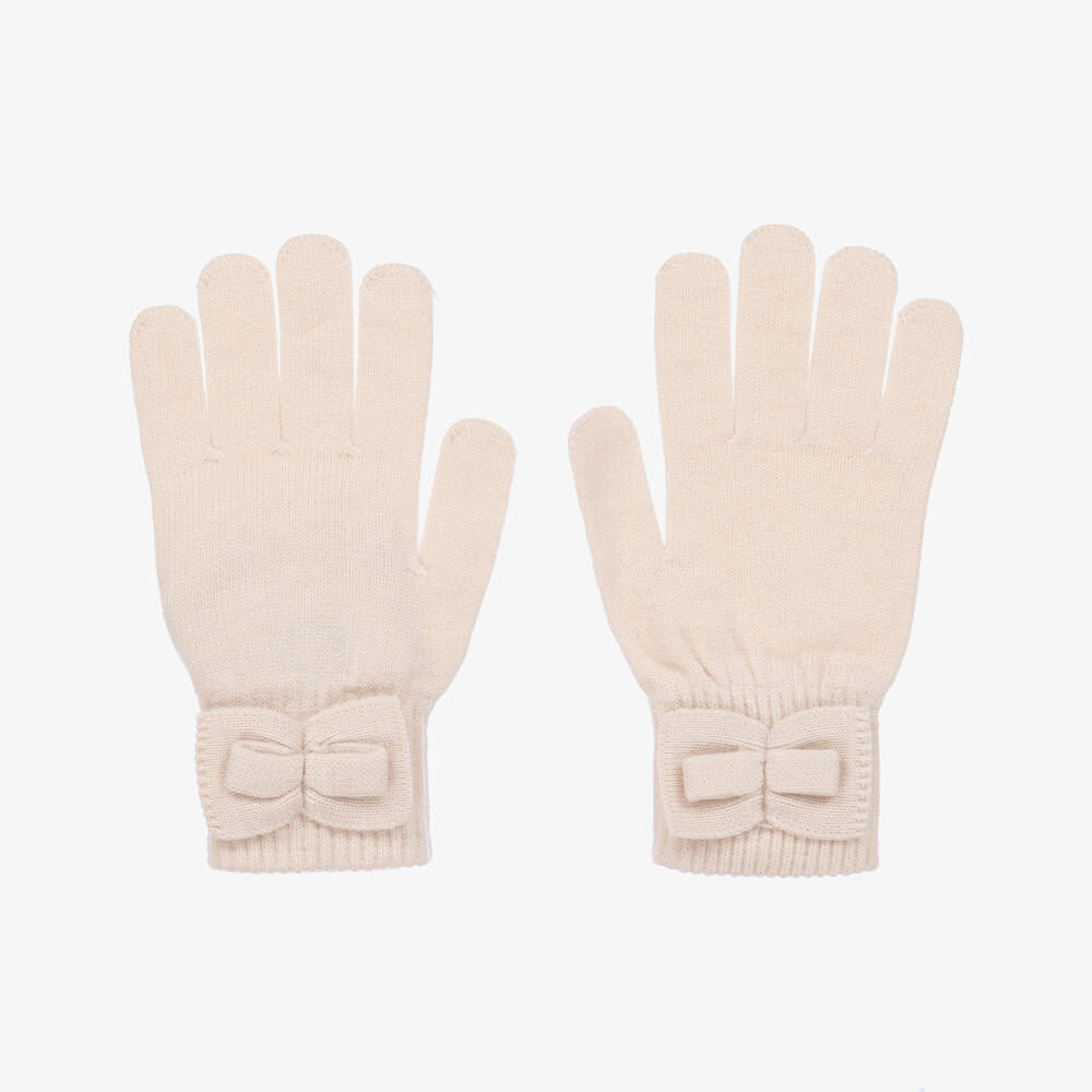 Girls Ivory Knitted Bow Gloves