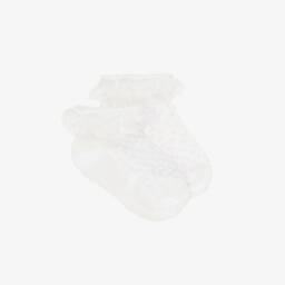 These ivory socks for little girls by Mayoral are lovely for a special occasion. Soft and comfortable, they are made in sheer tulle with a sweet polka dot design, complemented by a frilly lace trim around the ankle.