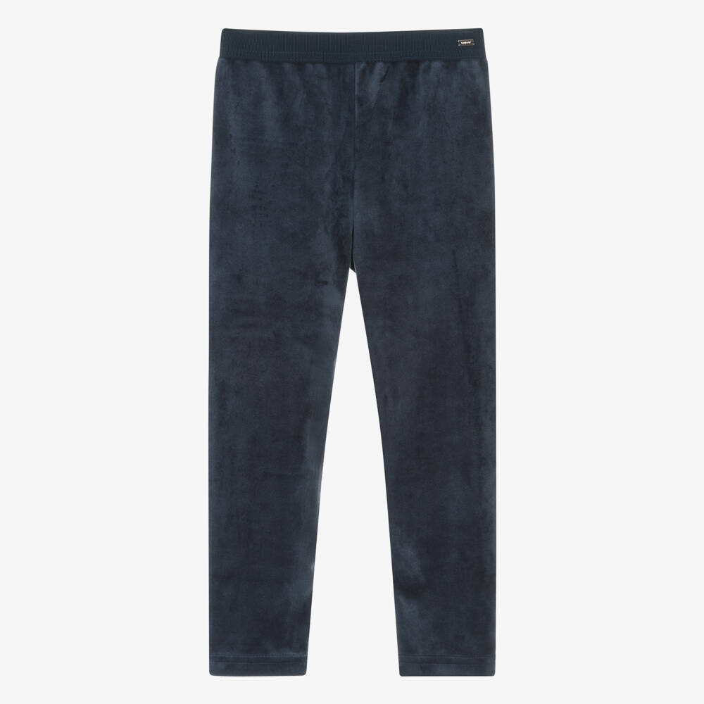 Girls navy blue velour full length leggings from Spanish brand, Mayoral. Super soft and stretchy, this lovely wardrobe staple is easy to pull on with a comfortable elasticated waistband.