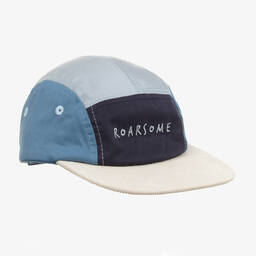 Pale blue cap for teen boys by Mayoral, made in soft sustainable cotton twill with an adjustable velcro strap at the back. It has a blue and orange embroidered sailing motif on the front and 'sailing days good days' on the back.