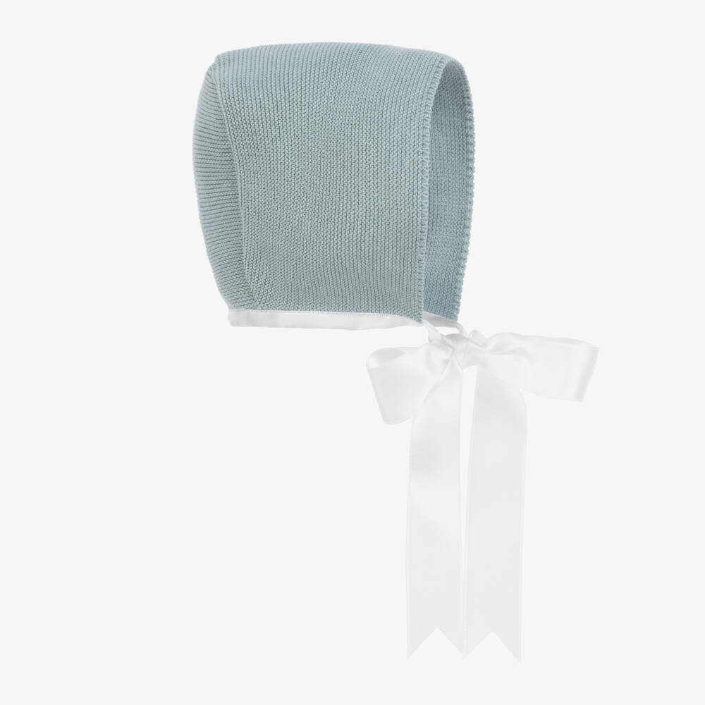 Lovely blue bonnet for baby boys and girls by Mebi, made in a soft and lightweight cotton knit. Designed in a sweet timeless style, it has soft satin ribbon trims that tie neatly under the chin for a secure fit.