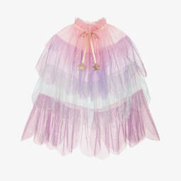 Fun for young dino enthusiasts, this dinosaur costume for boys and girls is by Meri Meri. The coppery brown cape is made in shiny lamé and has blue spikes along the back. The attached hood is softly padded and trimmed with felted facial detailing. There is a comfortable lightweight lining and an easy popper fastening at the neck.