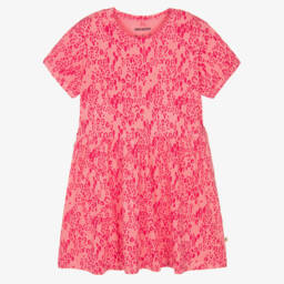 For girls from Mini Rodini, an orange-brown dress made in an organic cotton blend. Styled with a retro silhouette, this velour corduroy dress is finished with a cat patch on the chest.