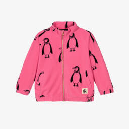Grey fleece zip-up top for boys and girls by Mini Rodini, patterned with a playful penguin print. Cosy and warm, this versatile top has front pockets and elasticated trims for a snug fit. It fastens with a gold-tone zip and has a branded patch on the front for a signature finish.