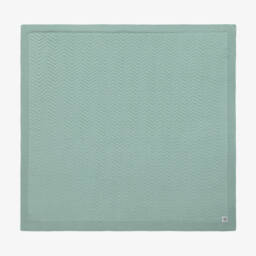 Sweet dove grey blanket for baby boys and girls by Spanish designer Minutus. Made in soft, finely knitted cotton, it has a raised chevron pattern and a sweet logo patch in one corner. An attractive nursery accessory, its lightweight design means it can also be used in the car seat or stroller.
